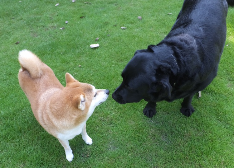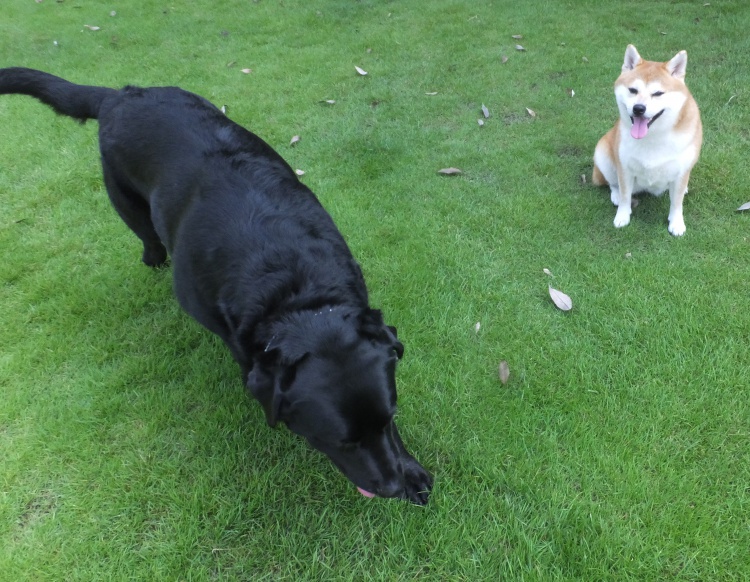 ラブラドールレドリバーのベルちゃんと柴犬の愛ちゃん^^