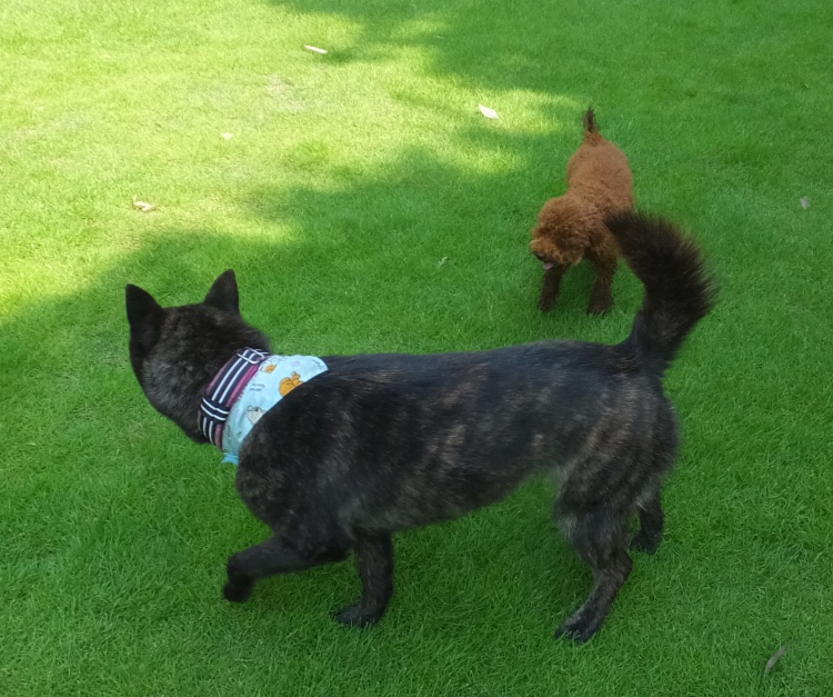 ジャックラッセルテリアのチャッピーちゃんも来て芝のフィールドは賑やかになりました^^