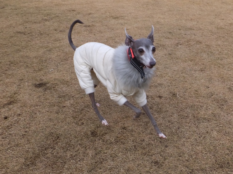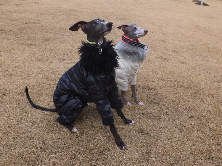 イタリアングレイハウンドのマーブルちゃんとモネちゃんゴージャスなダウンウエアーです♪