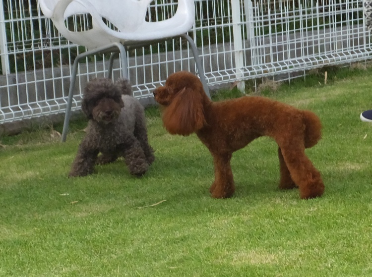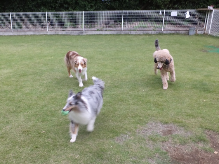アジリティー練習の後、芝のフィールドで遊びました^^