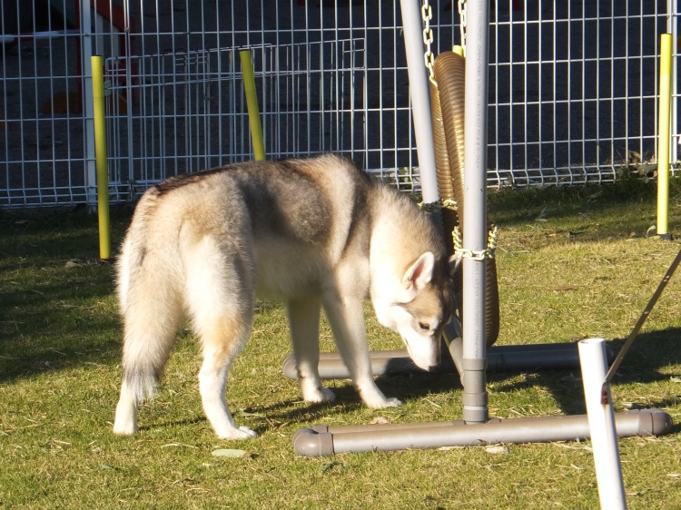 アジリティーの練習の後、芝のフィールドでクランちゃんと遊びました^^