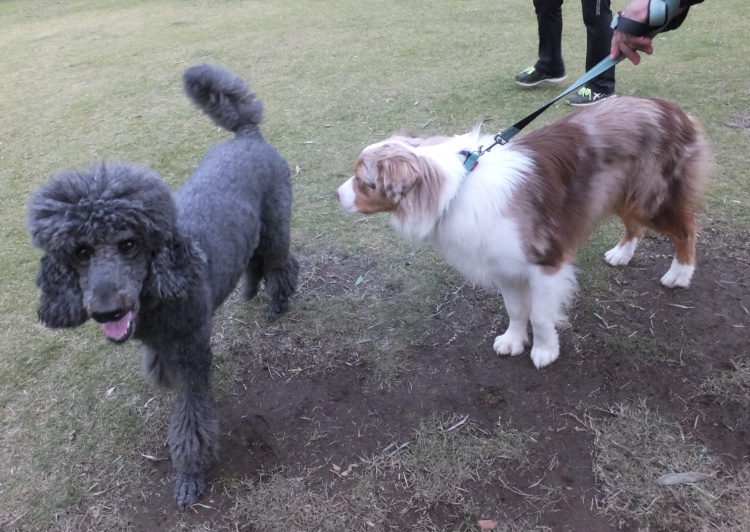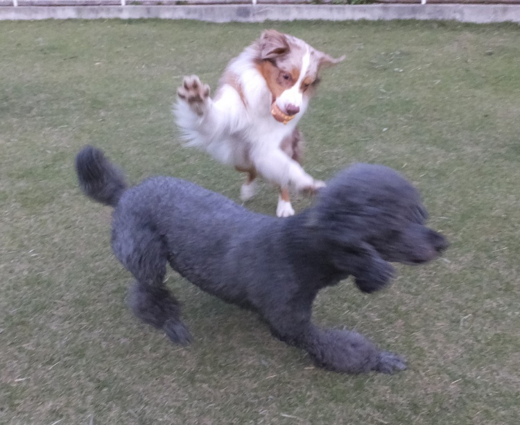 シェルティーのアイル君とオーストラリアンシェパードのクランちゃん^^