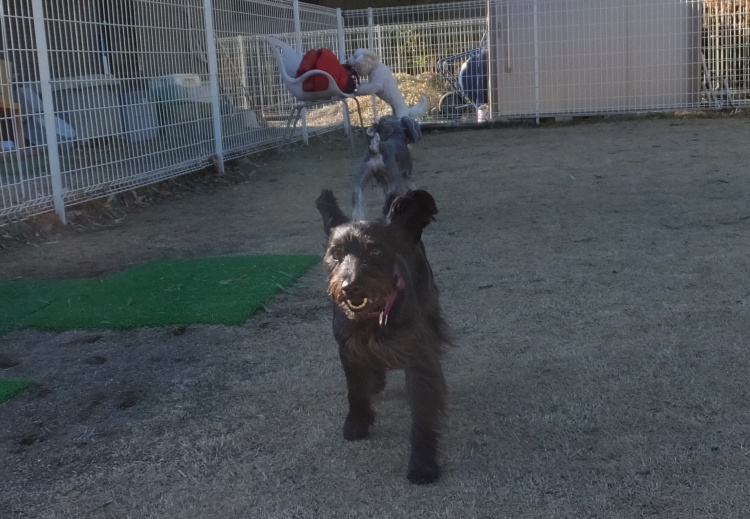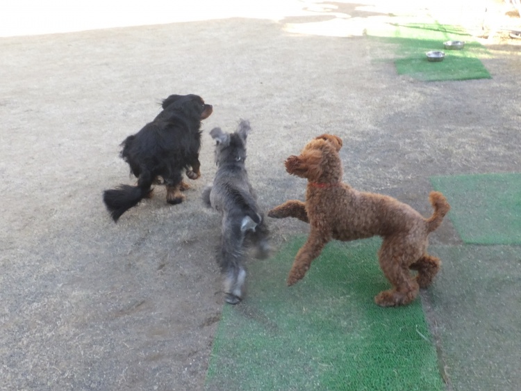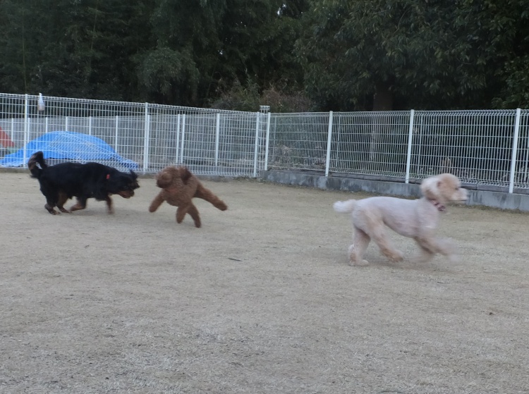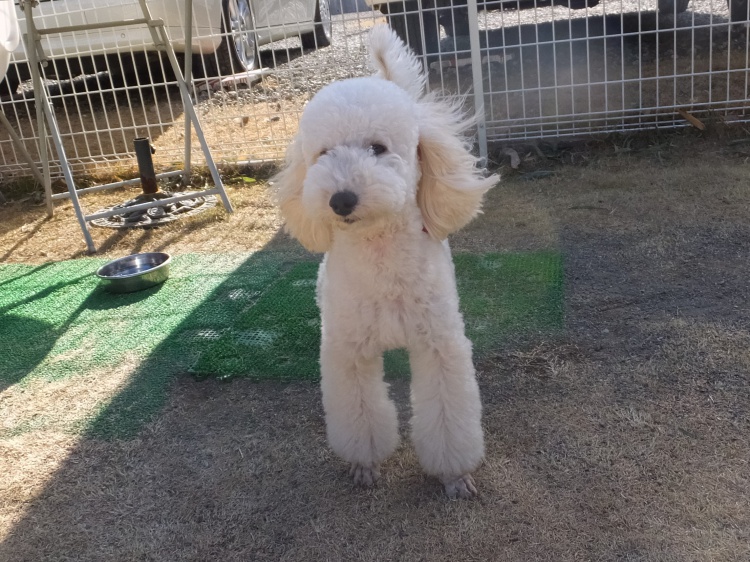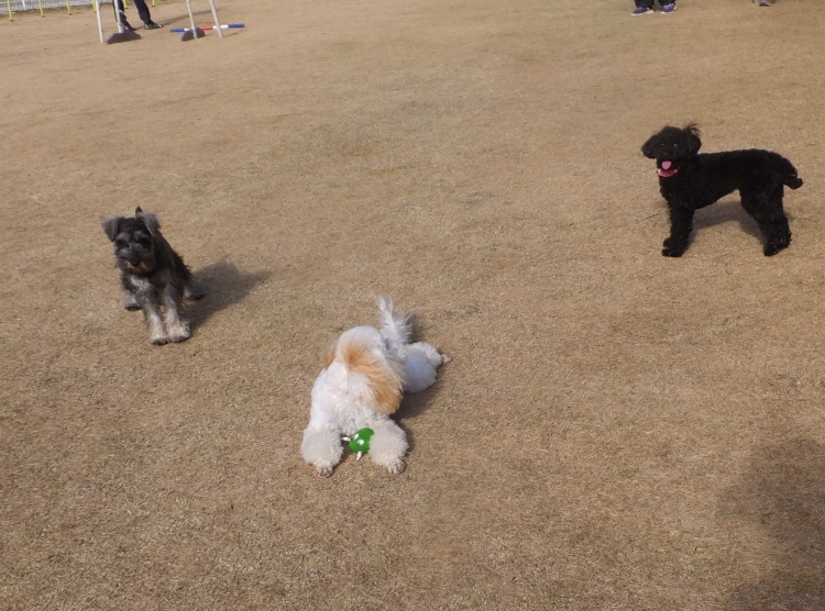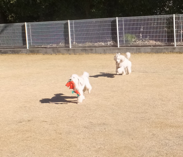 ミディアムプードルのハニーちゃんジャニーちゃん、スタンダードプードルのエリーちゃん^^