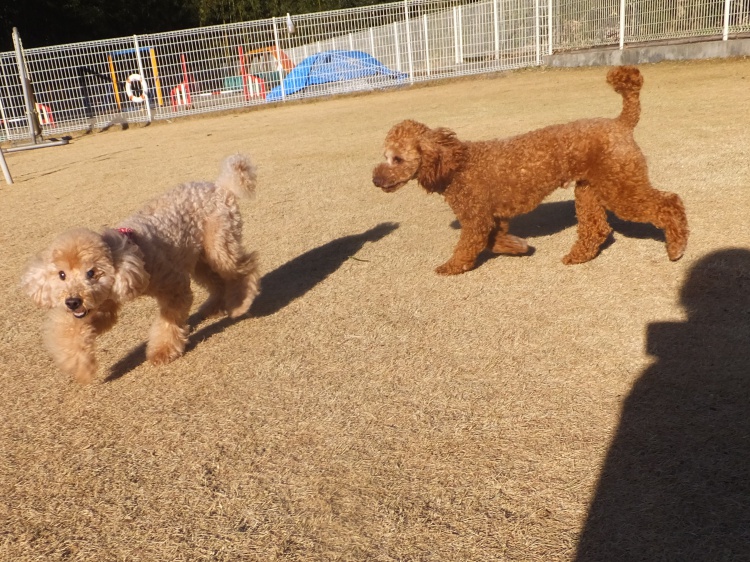 ミディアムプードルのメリーちゃん、トイプードルのアズキちゃん^^