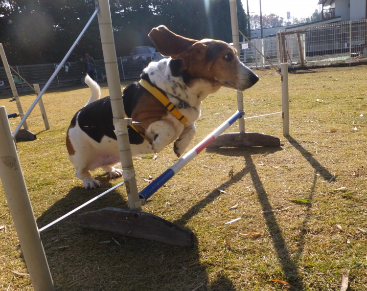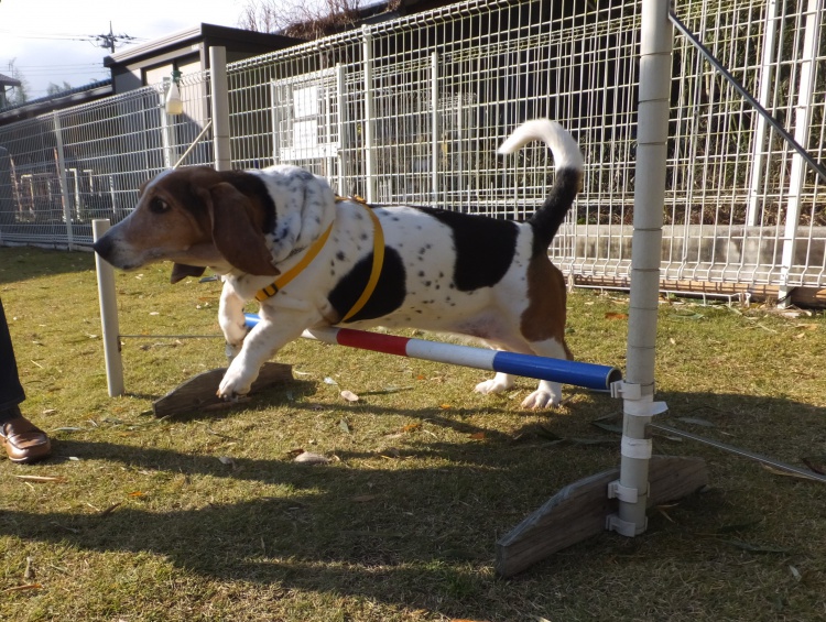 バゼットハウンドのマロンちゃん^^ハードルジャンプ楽々