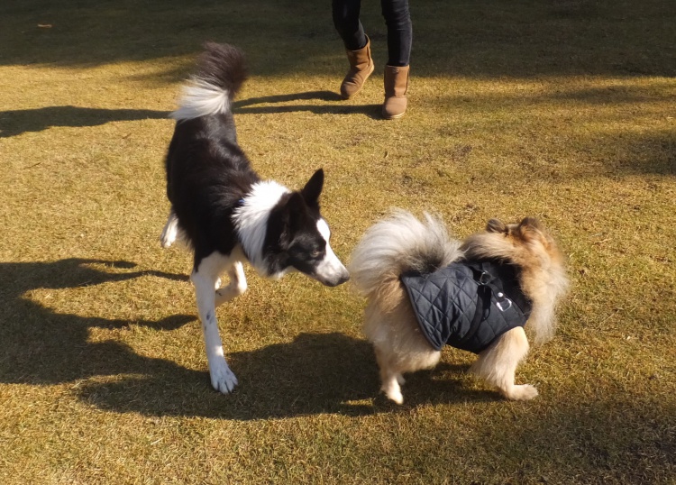 ボーダーコリーのウォーリー君、ポンキチ君が気に入ってしまったようで・・・男の子同士なのにね(@@)