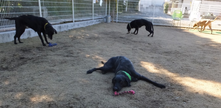 トンキチ君、ロック君、トミー君、ハーマイオニーちゃん、練習の前に芝生で一遊び(^^♪
