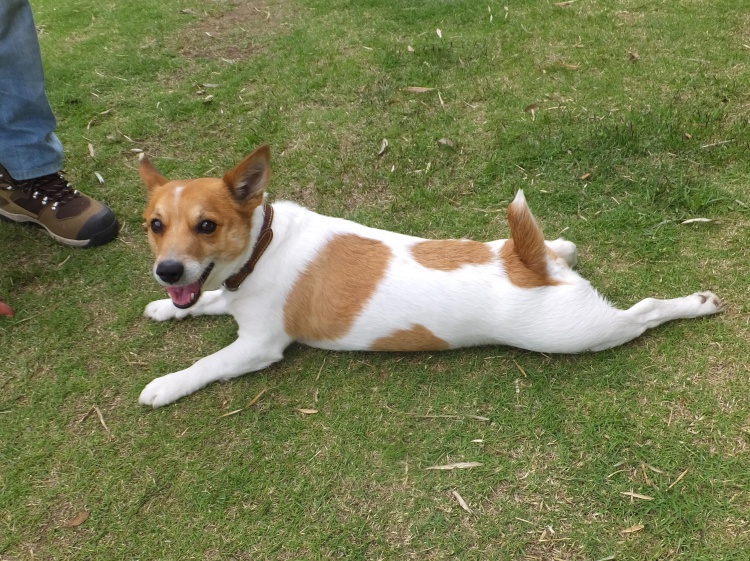 ジャックラッセルテリアのチャッピーちゃんはホフク前進が得意^^