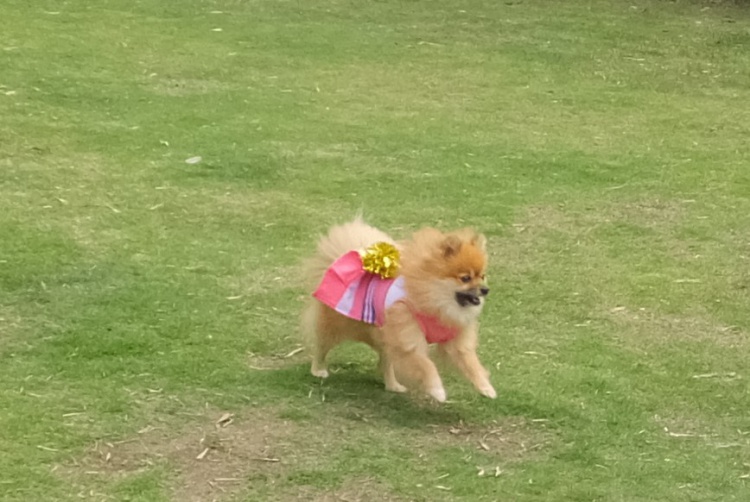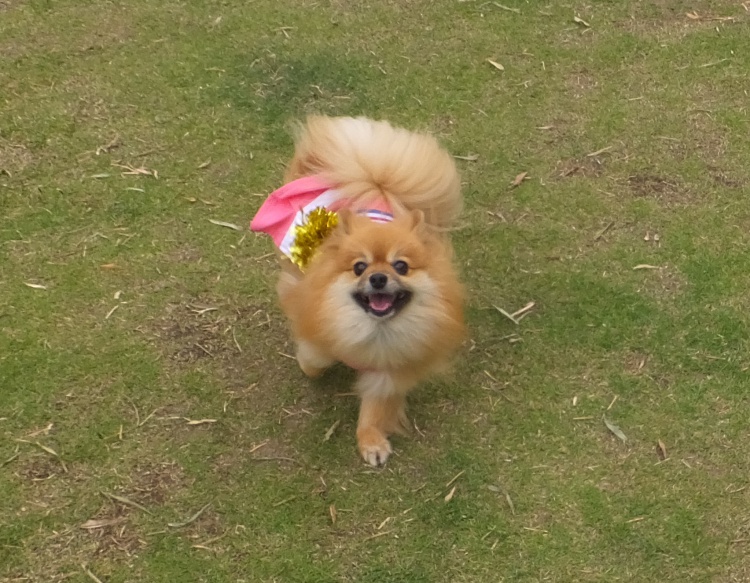 ポメラニアンのモコちゃんはチアガールで登場^^