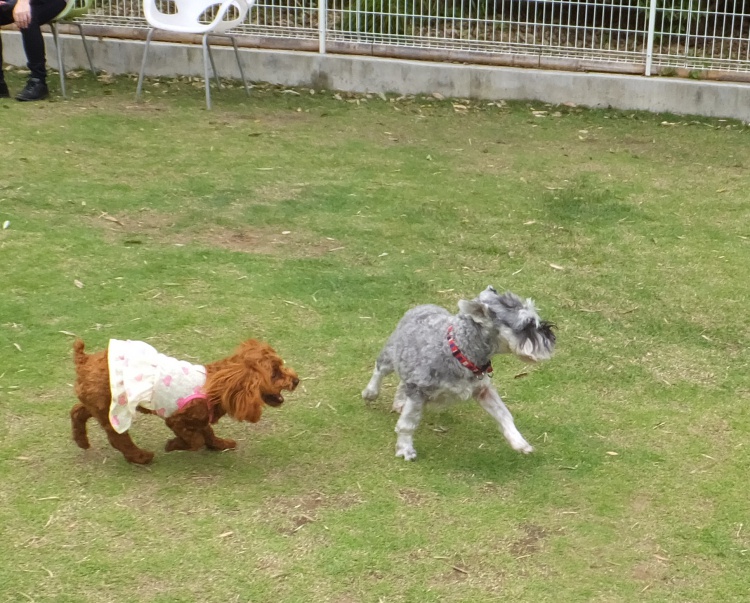 ヨーキーのアトム君は最初はちょっとビクビクでしたが、だんだん慣れてランランしていました^^