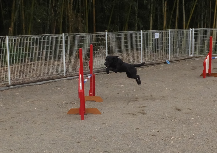 ラブラドールレドリバーのベルちゃん、ジャンプもじょうずです^^