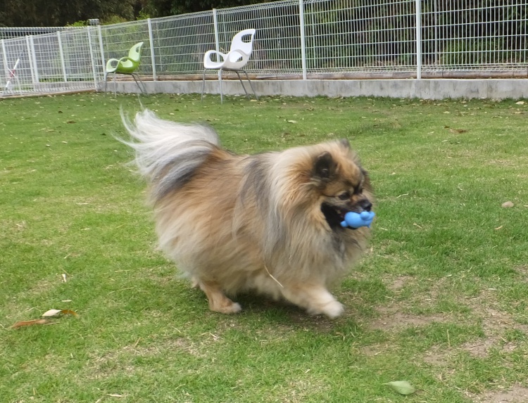 一番に来てくれたのはポメMIXのポンキチ君^^Myゾウさんのおもちゃお気に入りです♪