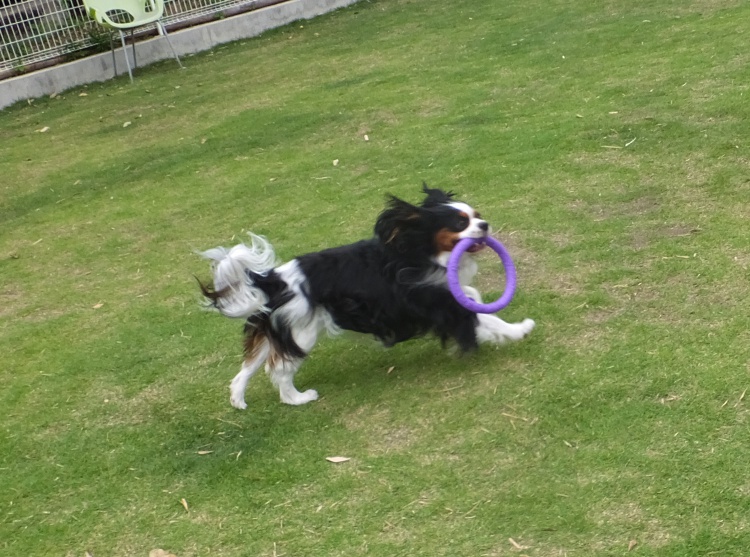 キャバリヤのあられちゃんのお気に入りはご持参のリングのおもちゃ^^
