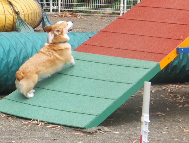 一番に来てくれたのはコーギーのケンシロー君、アジリティーの練習です^^