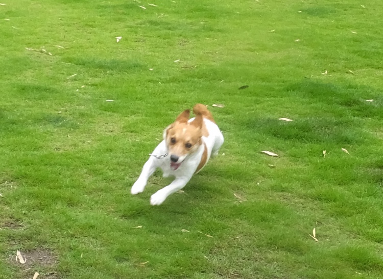 ジャックラッセルテリアのチャッピーちゃん、走ったら・・暑いですって><