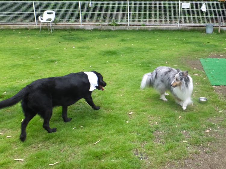シェルティーのアイル君、アジリティーの練習の後みんなと遊びました^^