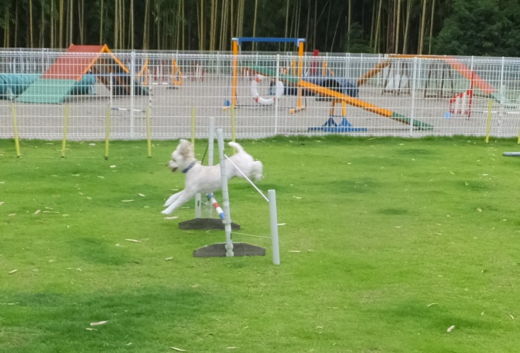 スタンダードプードルのスダチちゃんはアジリティーの練習です^^