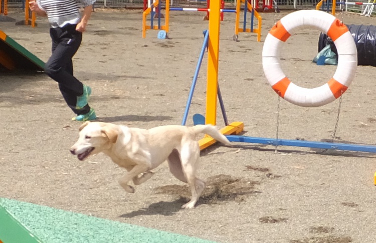 ラブラドールレドリバーのなっちゃんハルちゃん姉妹はアジリティーの練習です^^