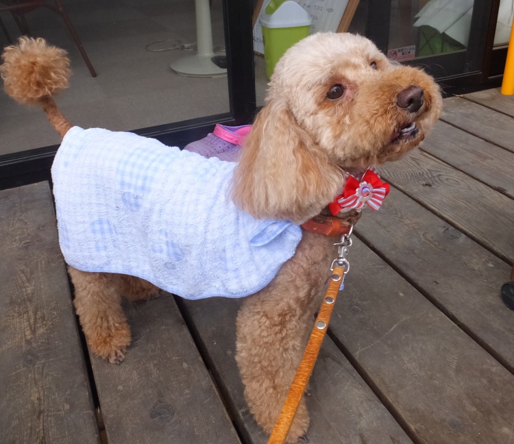 ウッドデッキで一休みの時は濡れタオルでクールダウン^^