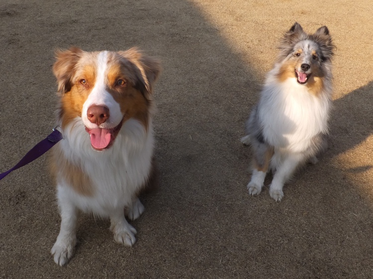 シェルティーのアイル君とオーストラリアンシェパードのクランちゃん^^