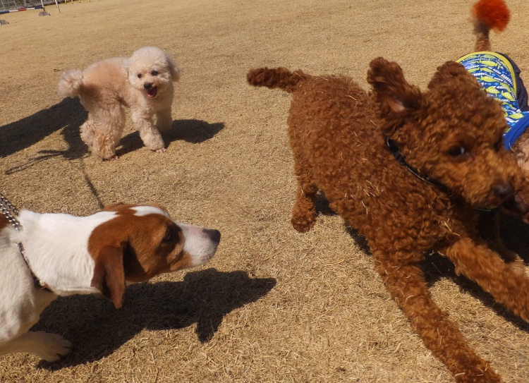 スタンダードプードルのエリーちゃんミディアムプードルのハニーちゃんジャニーちゃん^^