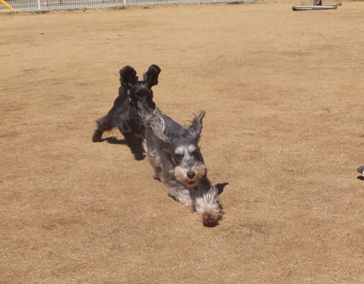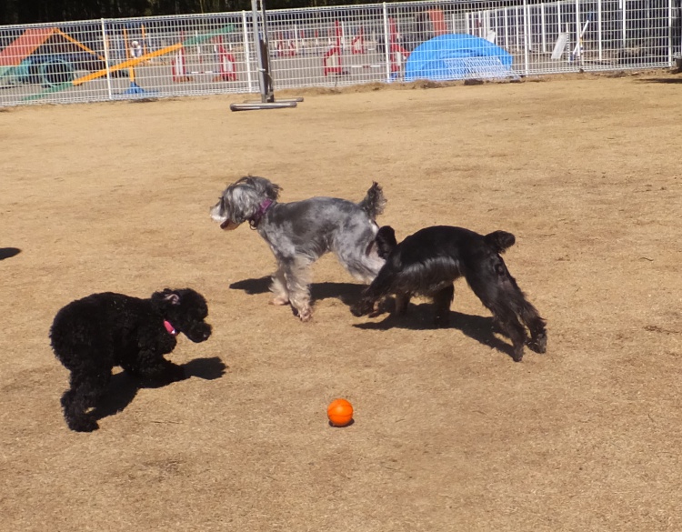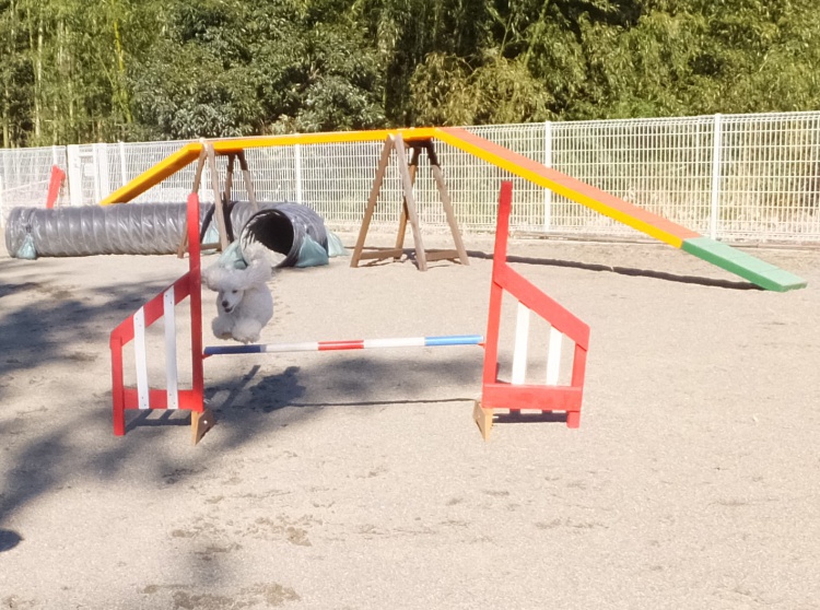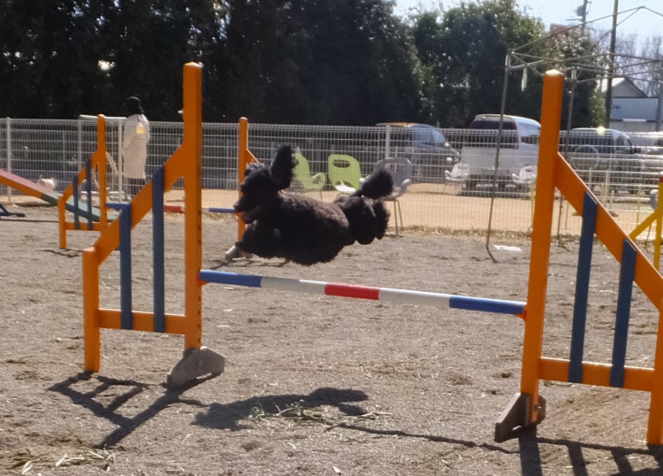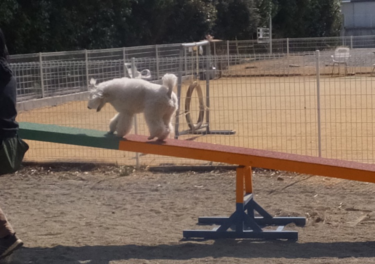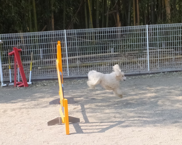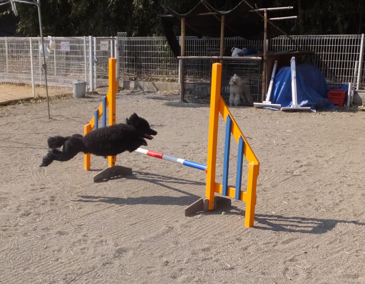 スタンダードプードルのエリーちゃん、ミディアムプードルのハニーちゃんジャニーちゃん、アジリティーの練習です(^^)
