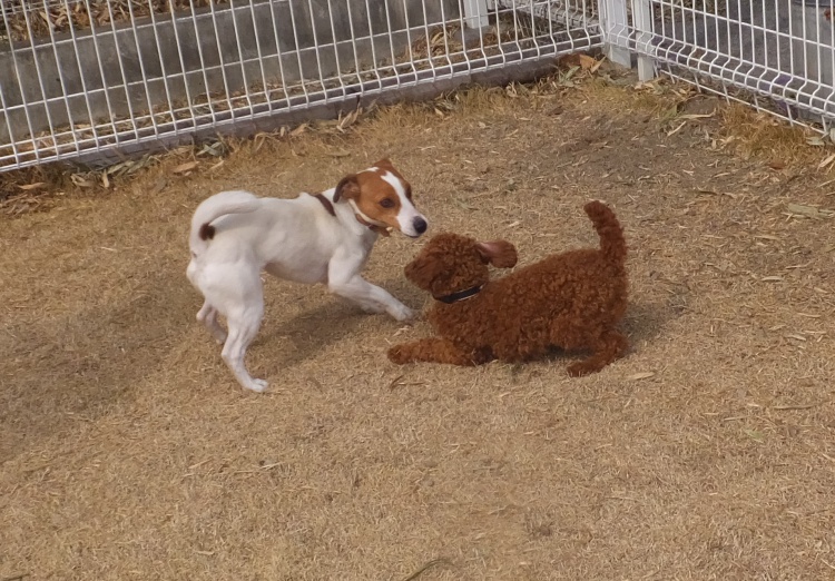 ジャックラッセルテリアのリズちゃんリゼちゃんトイプードルのリプちゃん^^