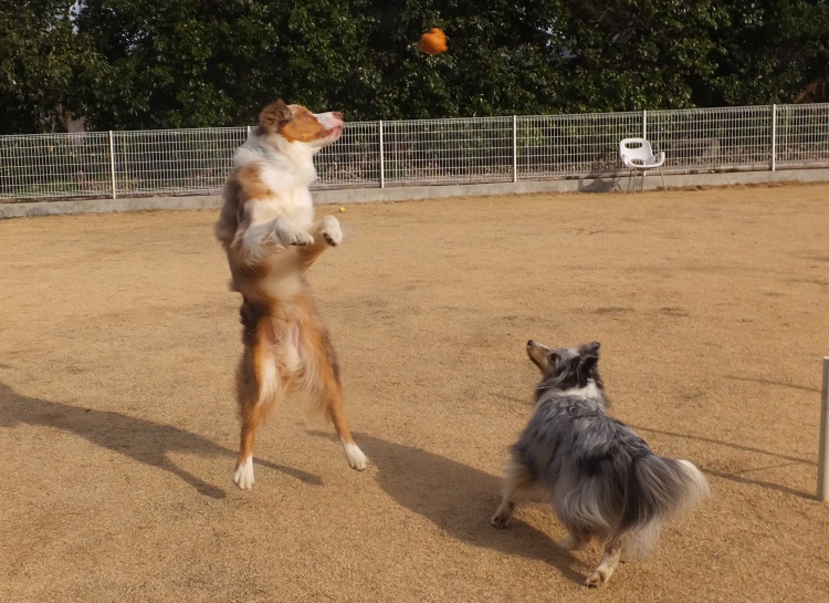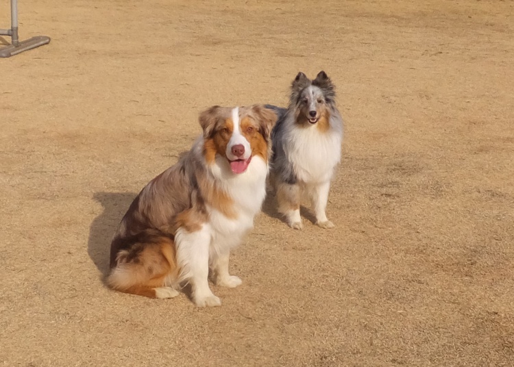 シェルティーのアイル君とオーストラリアンシェパードのクランちゃん^^
