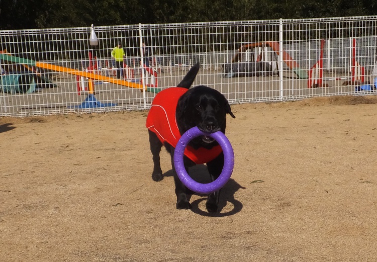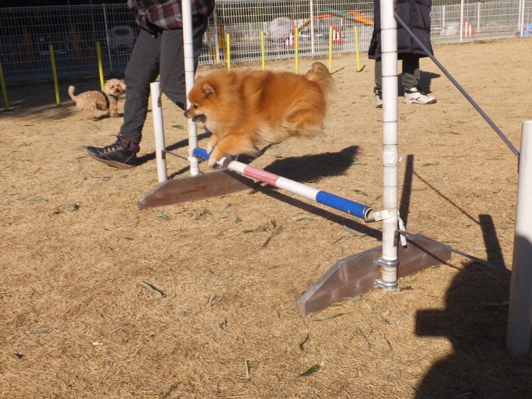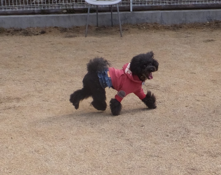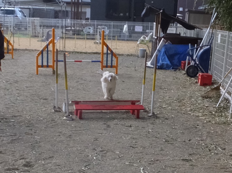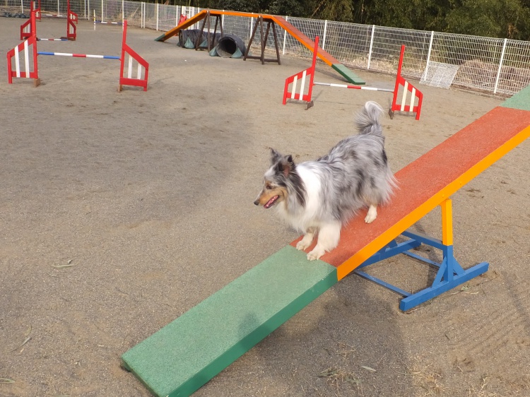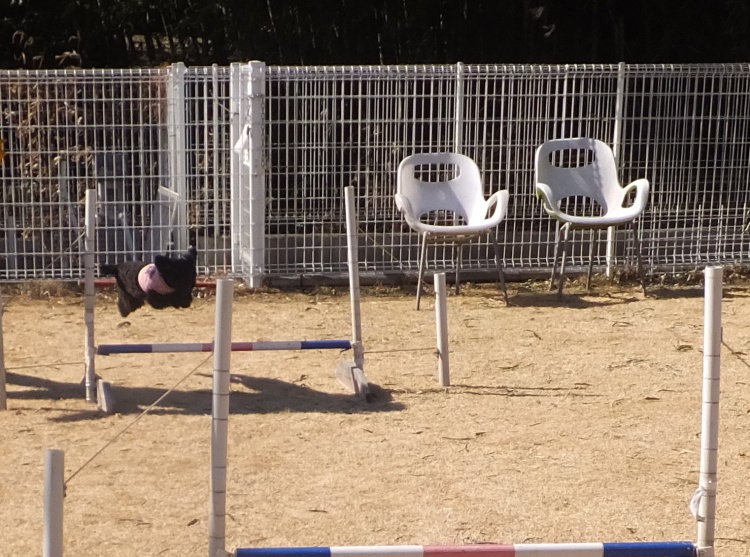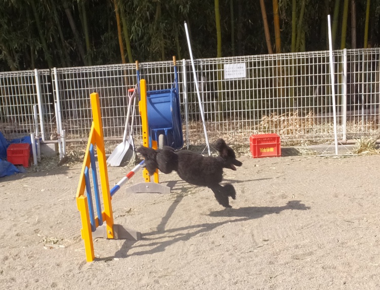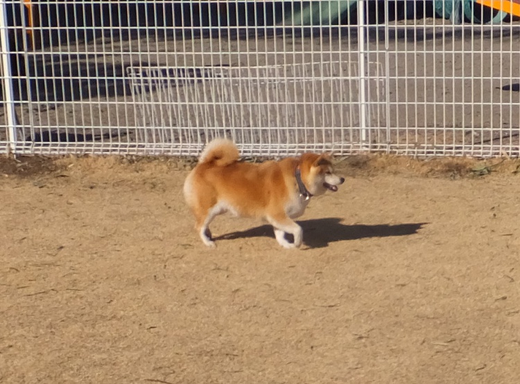 芝のフィールドとアジリティーフィールドの間のフェンス沿って元気に活動していました(><)