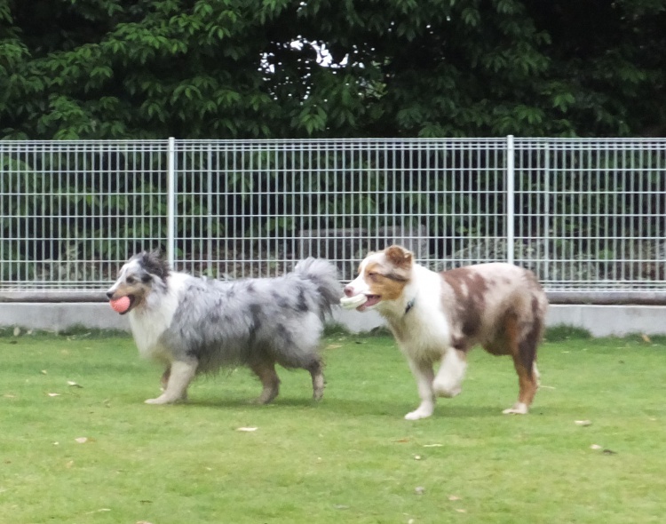 シェルティーのアイル君とオーストラリアンシェパードのクランちゃん^^