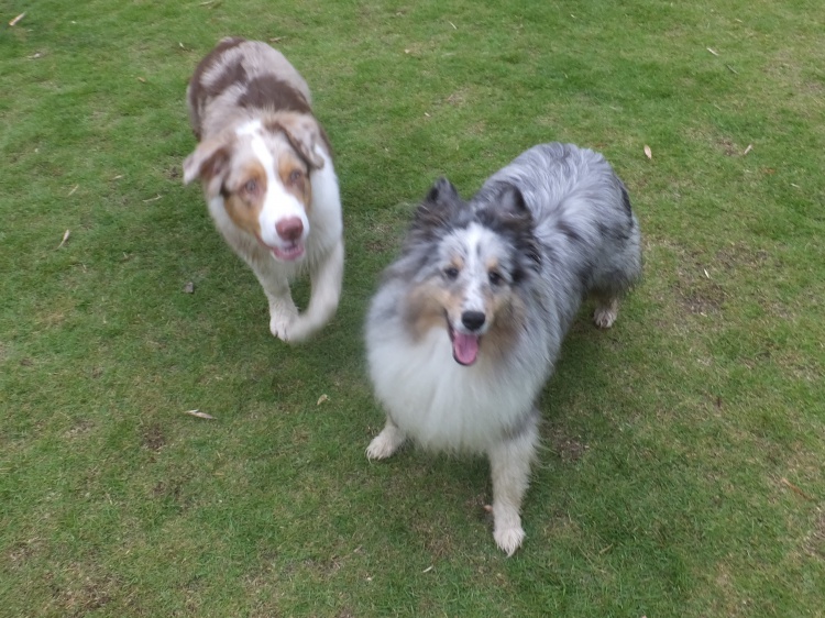 シェルティーのアイル君とオーストラリアンシェパードのクランちゃん。