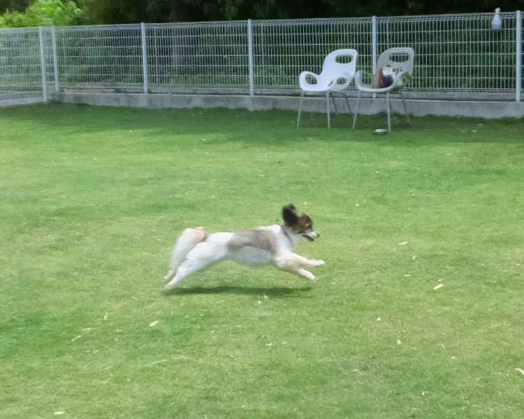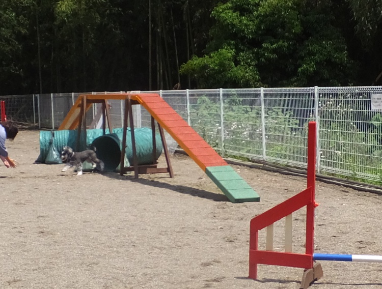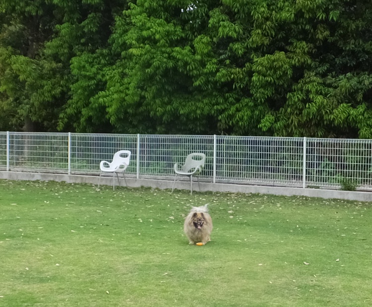 午後3時過ぎるとフィールドは木陰になり、人間は半袖では涼しいくらいでしたのでワンコは快適(^^♪