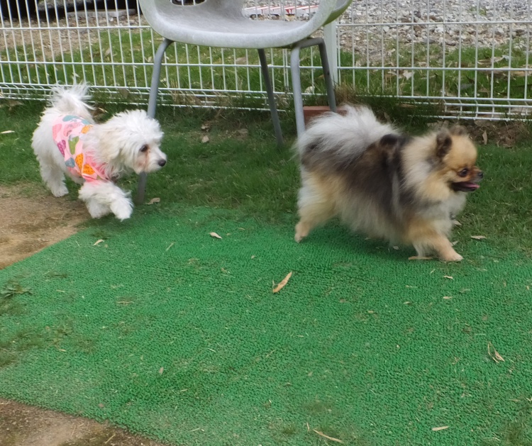 初めましてのチワワのツナちゃん、ポメラニアンのミンミちゃん^^