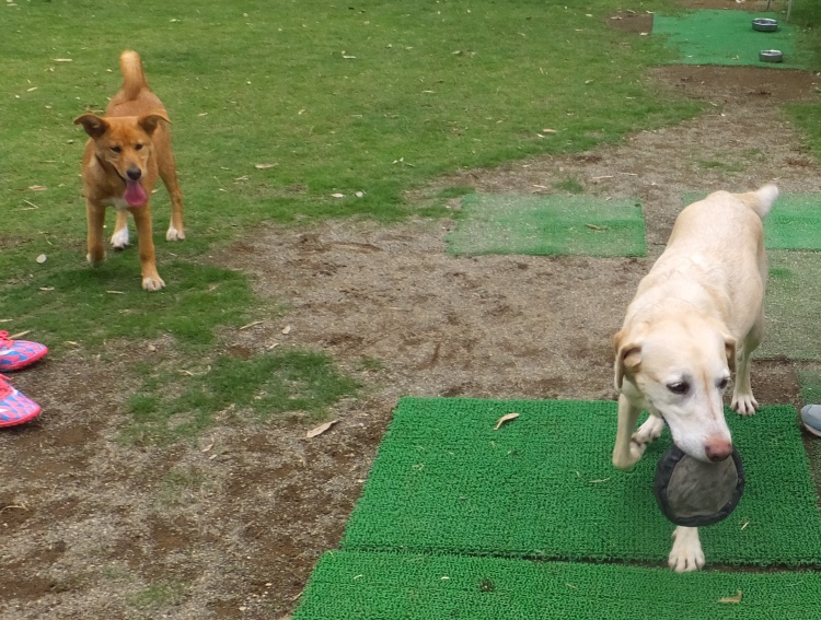 ラブラドールレドリバーのナッツちゃんはアジリティーの練習です^^