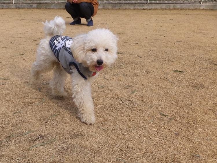 一番に来てくれたのはビションフリーゼのプーちゃん^^