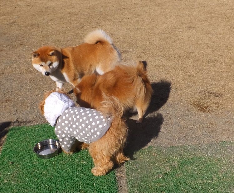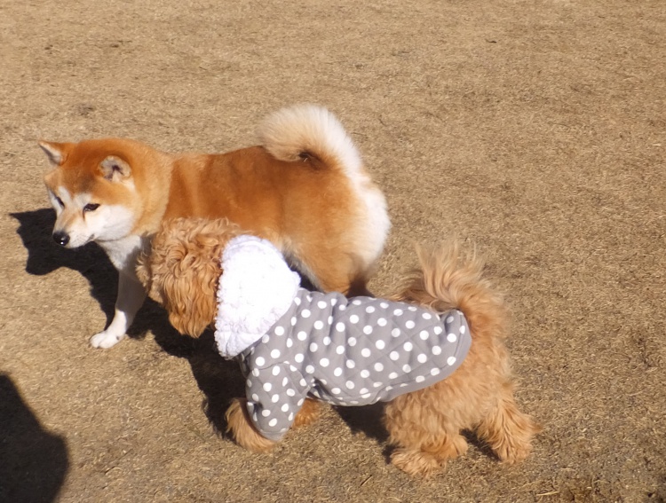 柴犬の愛ちゃん、リンちゃんと仲よく遊びました^^