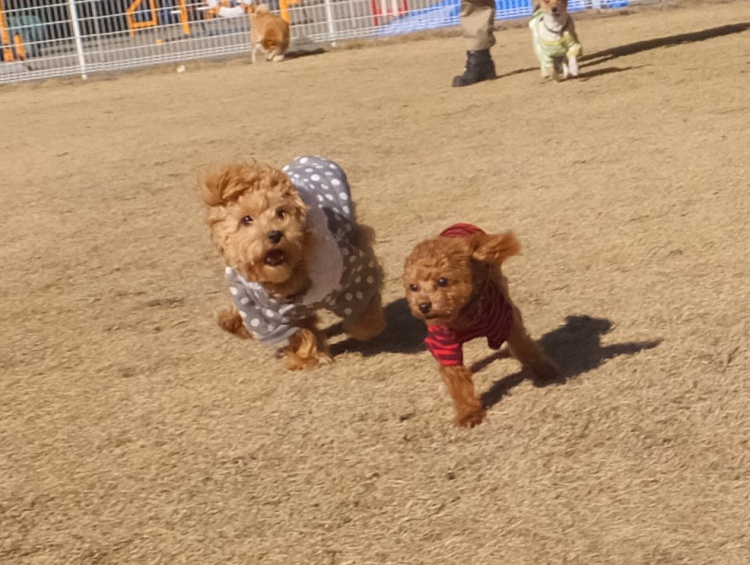 スタンダードプードルの蘭丸くん梵天丸くん、ガンガン走って遊びました^^