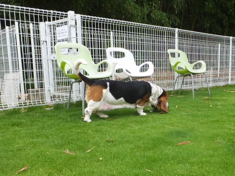 バゼットハウンドのマロンちゃんは暑いのが苦手><昨日は快適でした^^