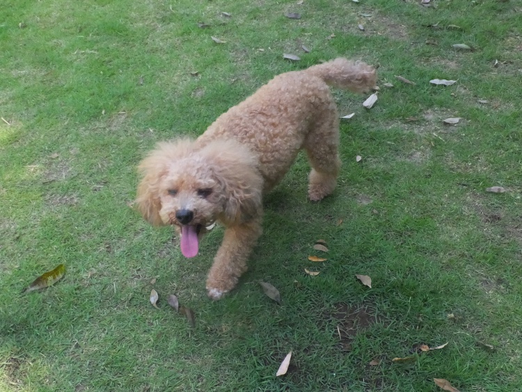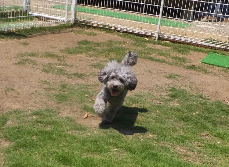 トイプードルのアンジュちゃん、芝のフィールドでまったり^^ジャンプもしちゃいました♪