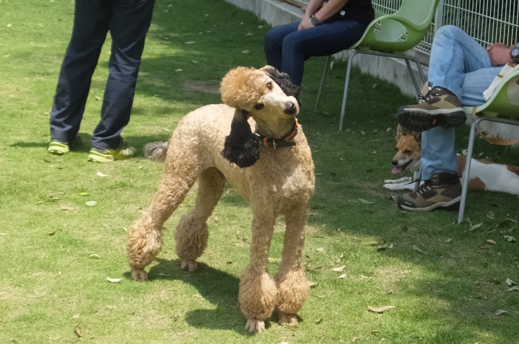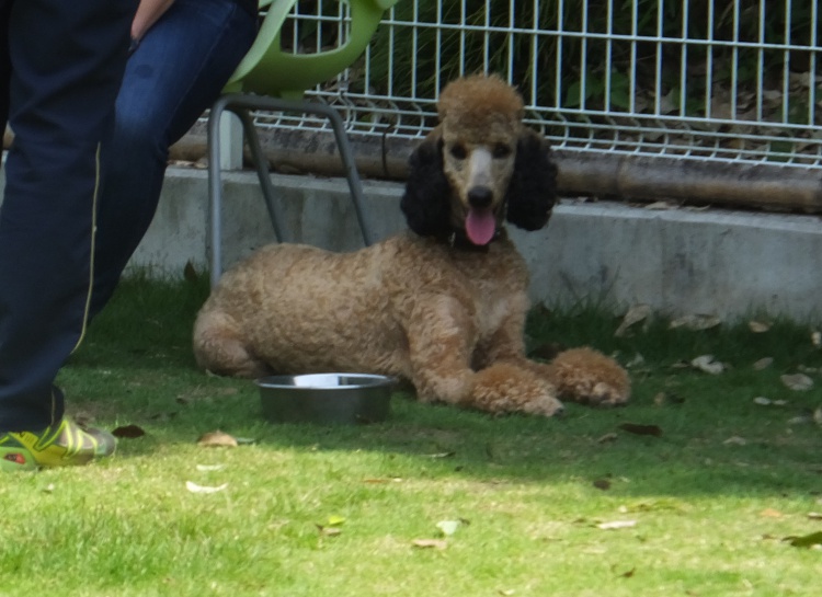 スタンダードプードルのスダチくんはアジリティー練習の後、芝のフィールドでまったり^^