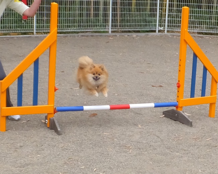 ポメラニアンのモコちゃんはアジリティー教室でお勉強です^^