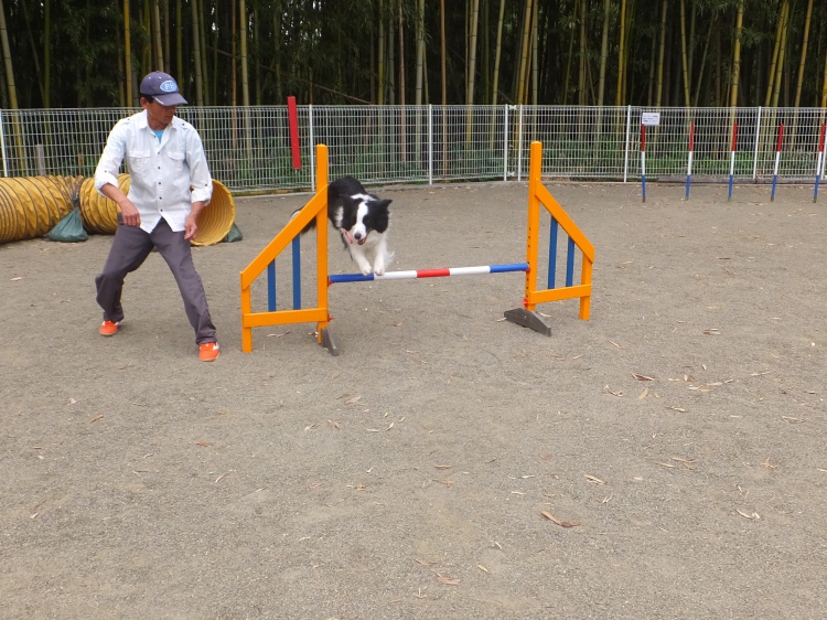 ボーダーコリーのスパーキー君、ママとアジリティーの練習です^^