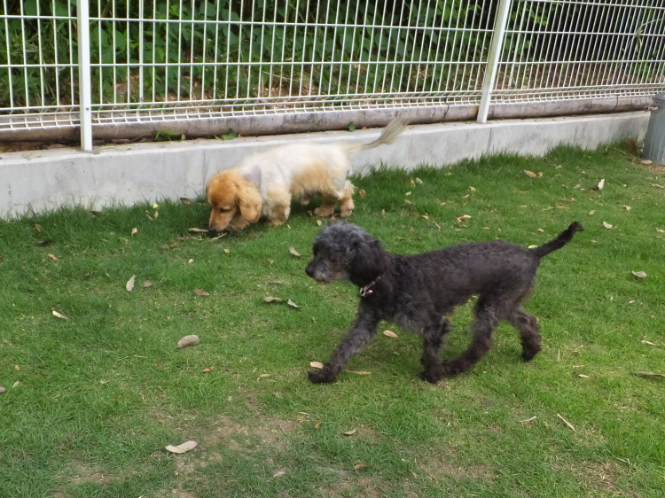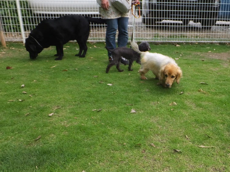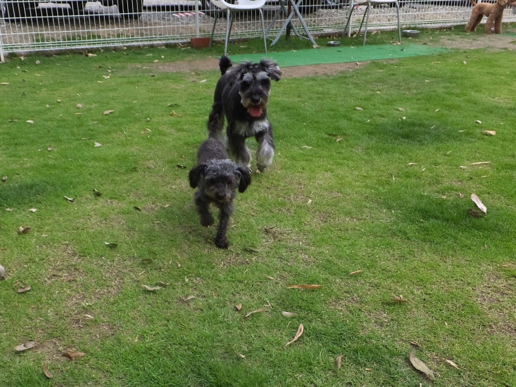 Mシュナのリリーちゃんはバディーちゃんのアジリティー教室が終わるのを待って芝のフィールドで遊びました^^