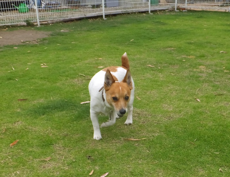 ジャックラッセルテリアのチャッピーちゃん、福ちゃんに犬社会の厳しさを指導中^^