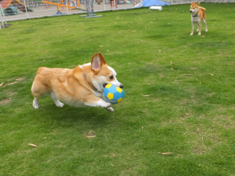 コーギーのケンシロウ君は芝のフィールドで遊んだ後、アジリティーの練習もしました^^