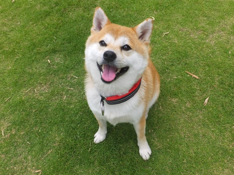 柴犬の愛ちゃん、今日は眠そうに登場^^
