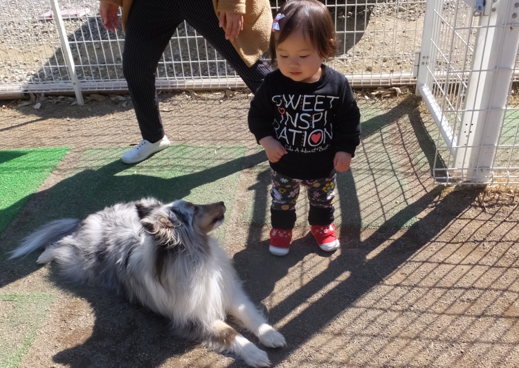 シェルティーのアイル君は人間の子どもにも優しくできます^^