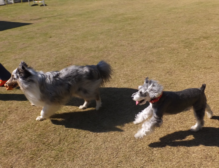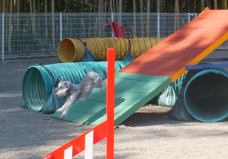 Mシュナのリリーちゃんとバディーちゃん兄弟、アジリティーの練習・・・上手です^^