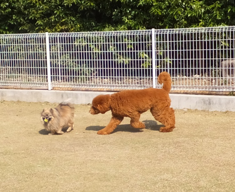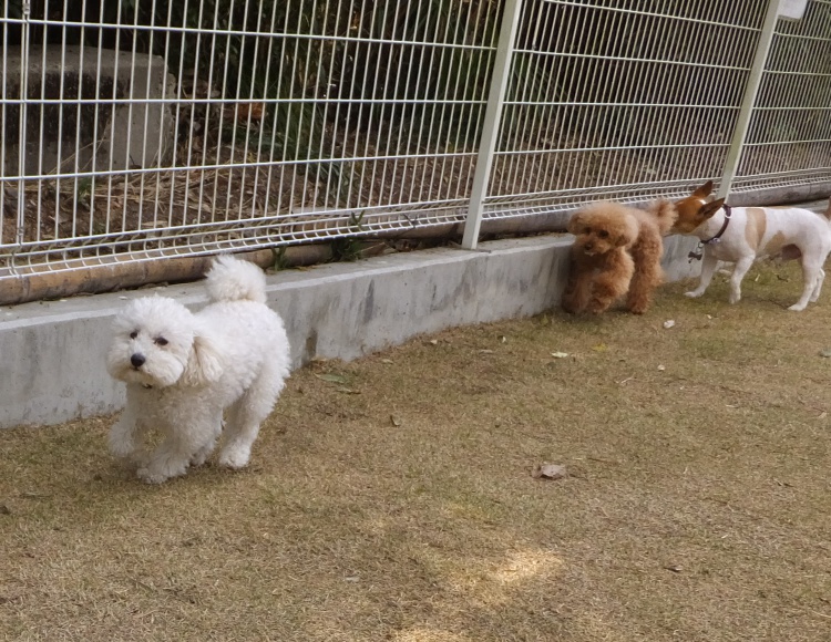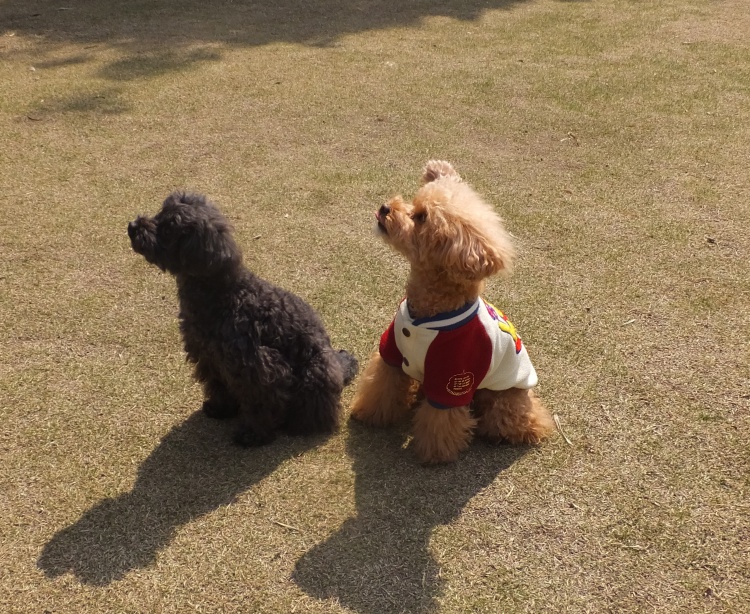 ボーダーコリー達が帰った後、トイプードルのモナカちゃんココアちゃん兄弟が来てくれました^^