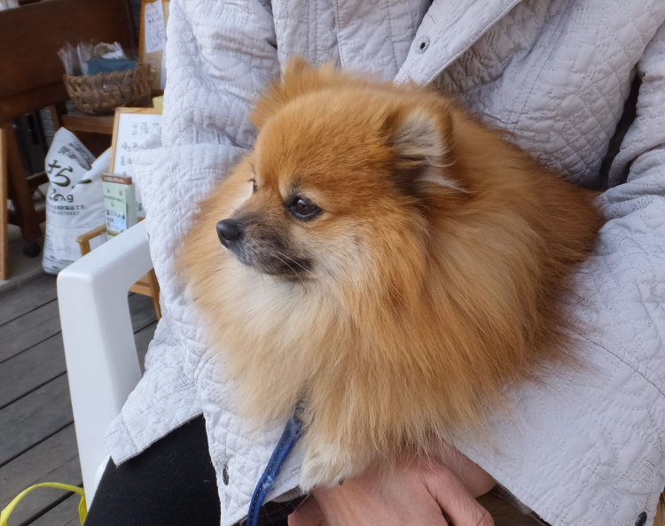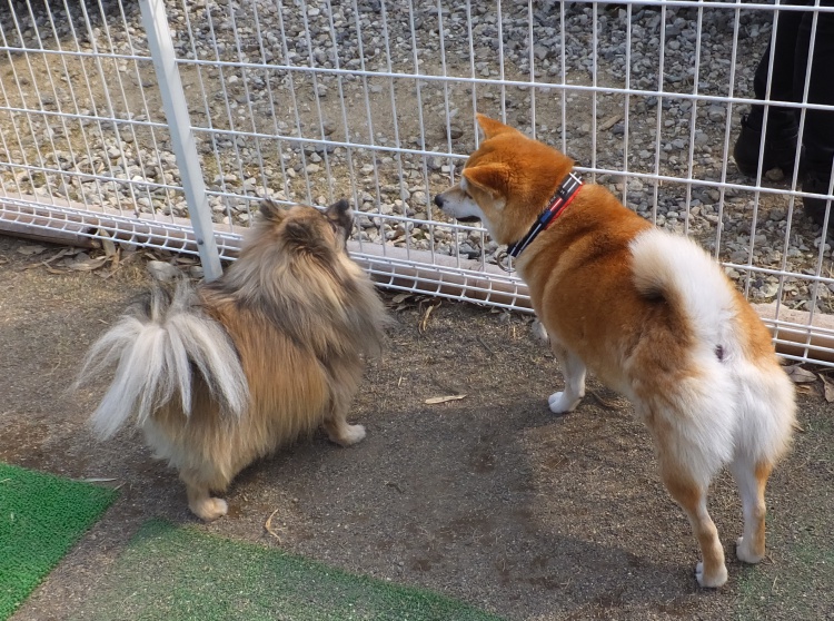 ポメラニアンのモコちゃんは大きなボーダーコリーに・・・ちょっと怖かったのかな?
